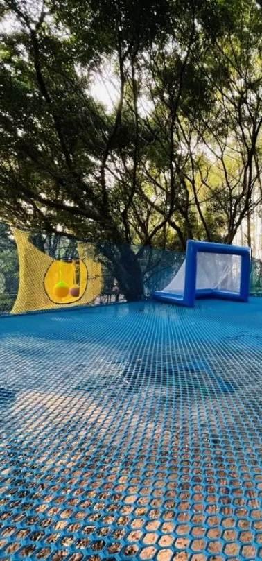 总面积达3000多平方米,是集冒险、运动、娱乐、挑战于一体的探险户外运动乐园,拥有广州最大的树上丛林魔网,面积达1000m²,上面设有蹦蹦床、彩虹网、波波池、踢球、投篮、走编织车轮等游乐项目。乐园还设有14个关卡,包括悬空梁桥、步道、木道、溜索等,难度不一,玩法不重复,趣味十足,最适合勇于探险的勇敢宝宝。